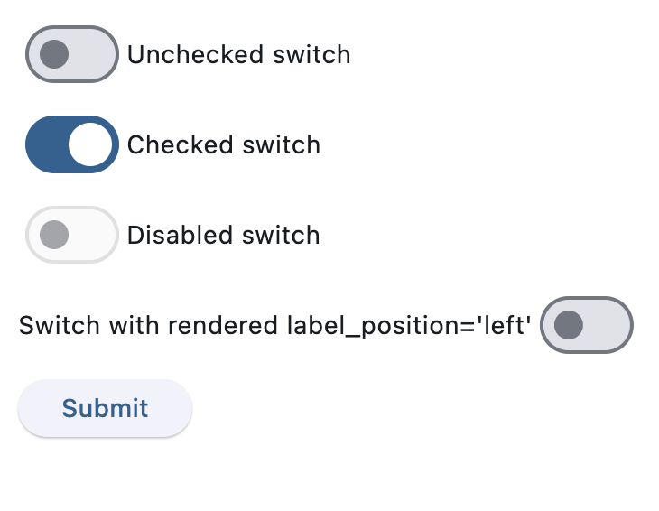 ft.Switch(label="Unchecked switch", value=False)